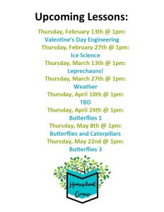 Evans Public Library now hosts a homeschool group that meets twice a month! Meetings take place from 1:00-2:00pm on the second and fourth Thursday of each month from February to May and from September to November.